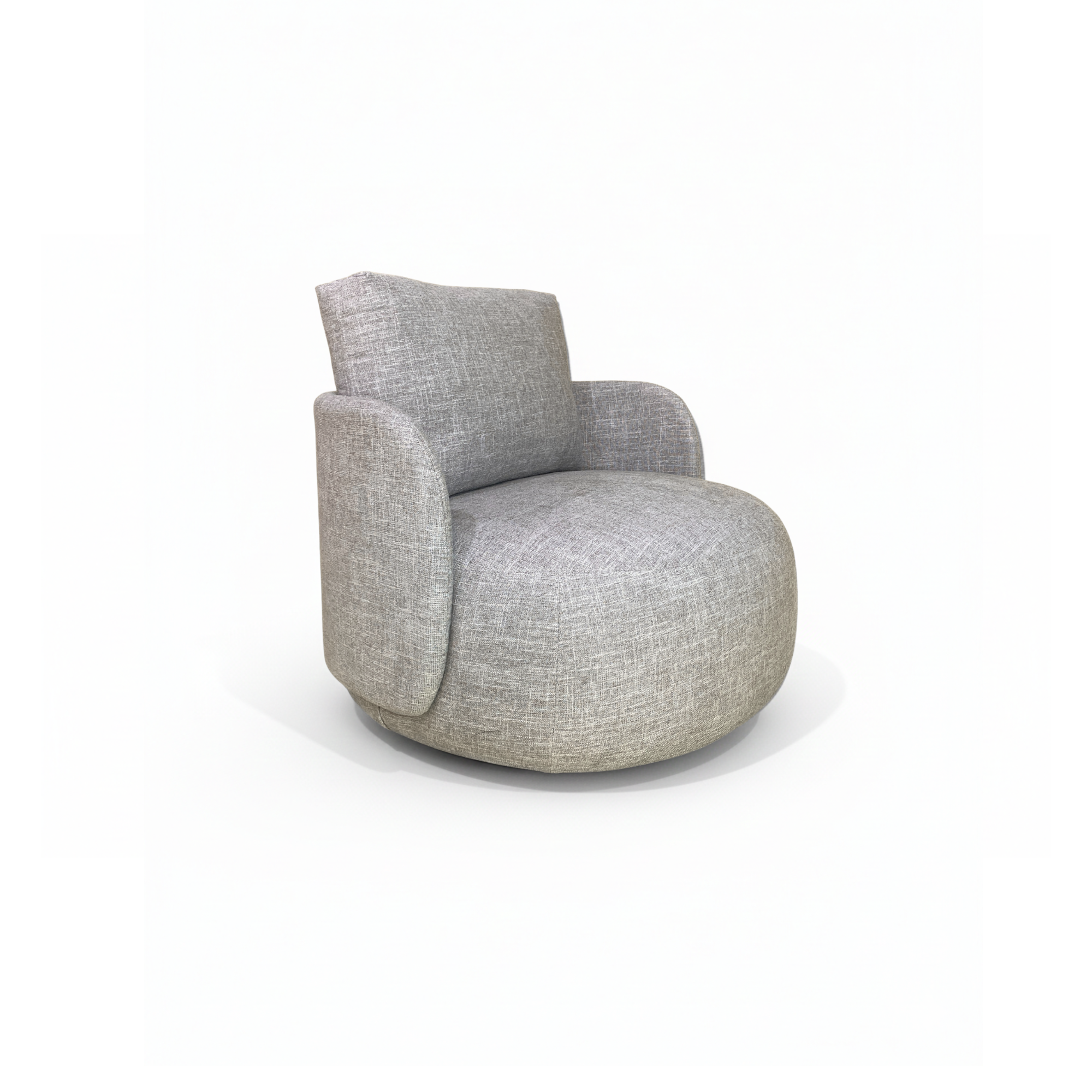 Com formas arredondadas e design acolhedor, Alma traz leveza e sofisticação ao ambiente. Sua base giratória adiciona praticidade e movimento, completando o espaço.